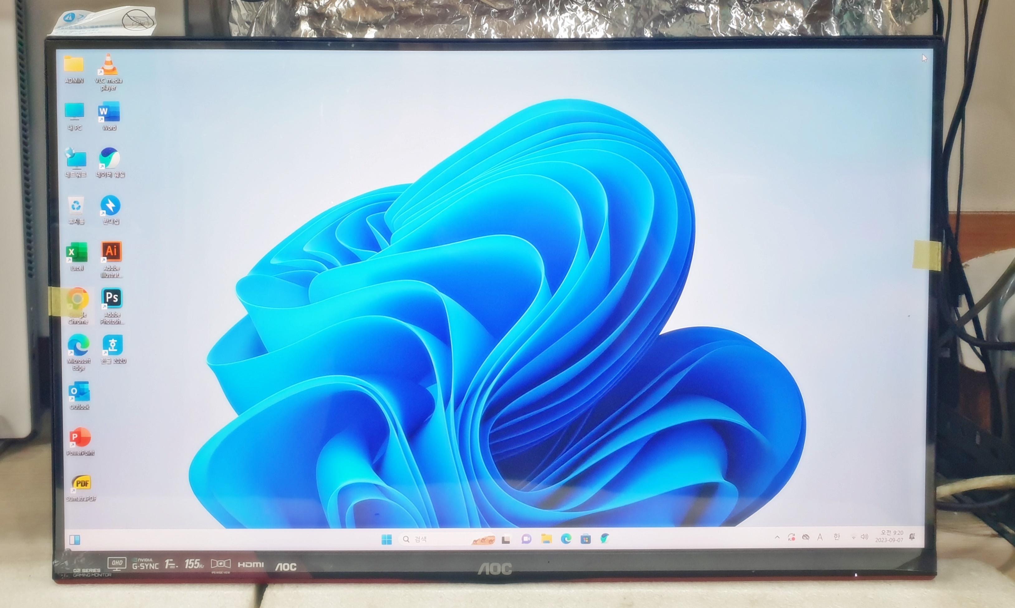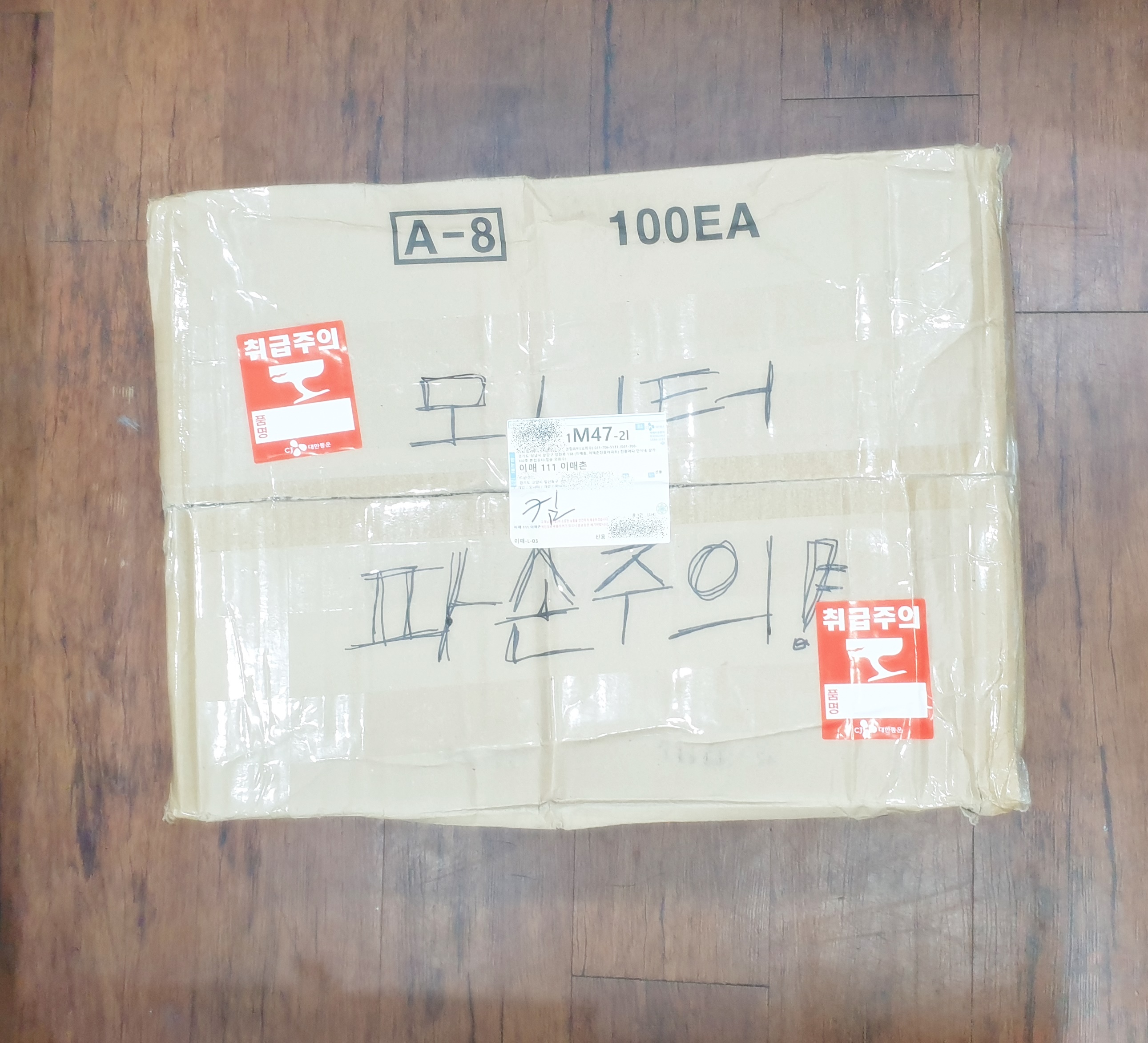 포장된 박스를 열어 모니터에 전원을 연결하고 고장 증상을 확인해 봤어요