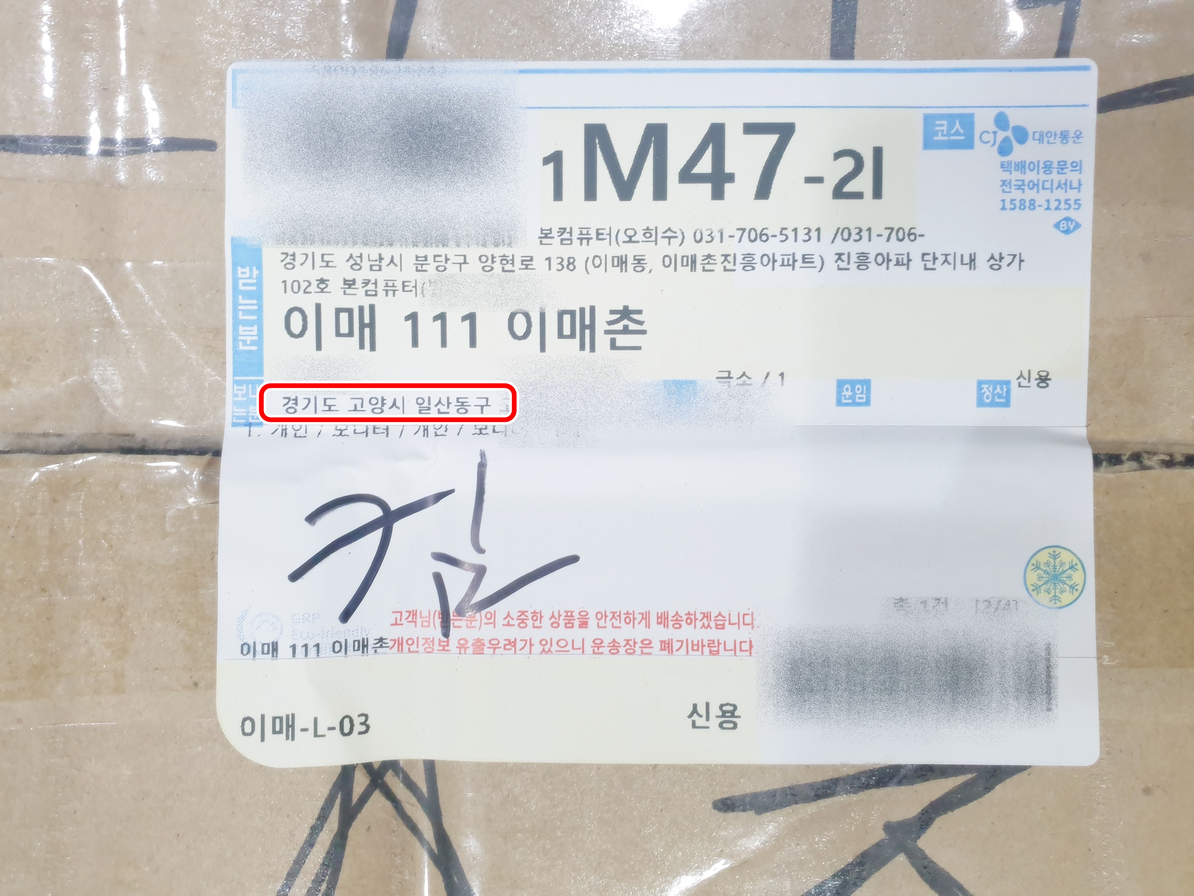 고양시 일산 동구에서 택배로 보내 주셨어요