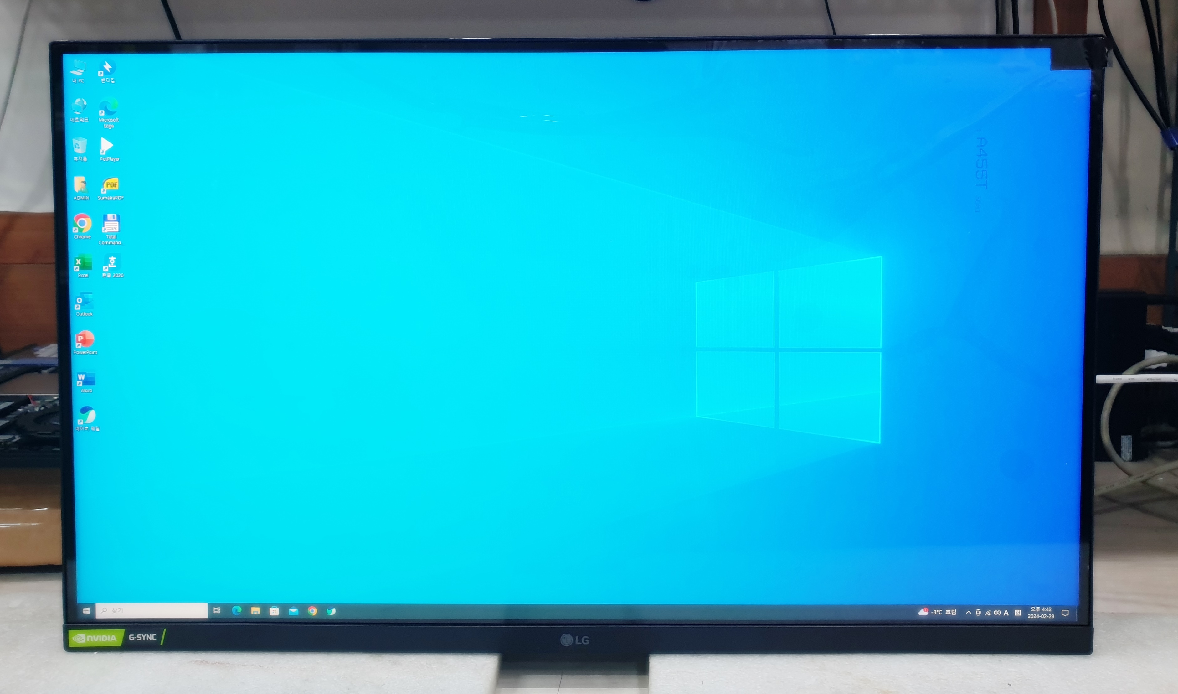 가지고온 모니터는 사용자분과 같이 전원을 연결해 화면 상태 체크에 들어갔고