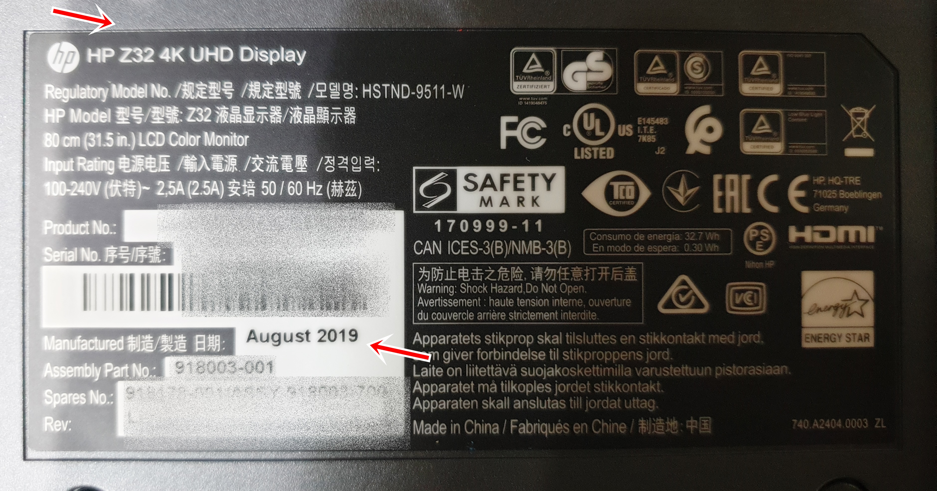 모델은 "HP Z32 4K UHD" 전문가용 모니터입니다.